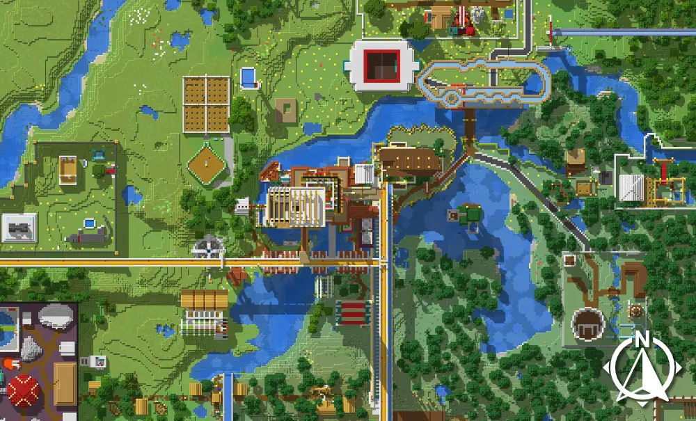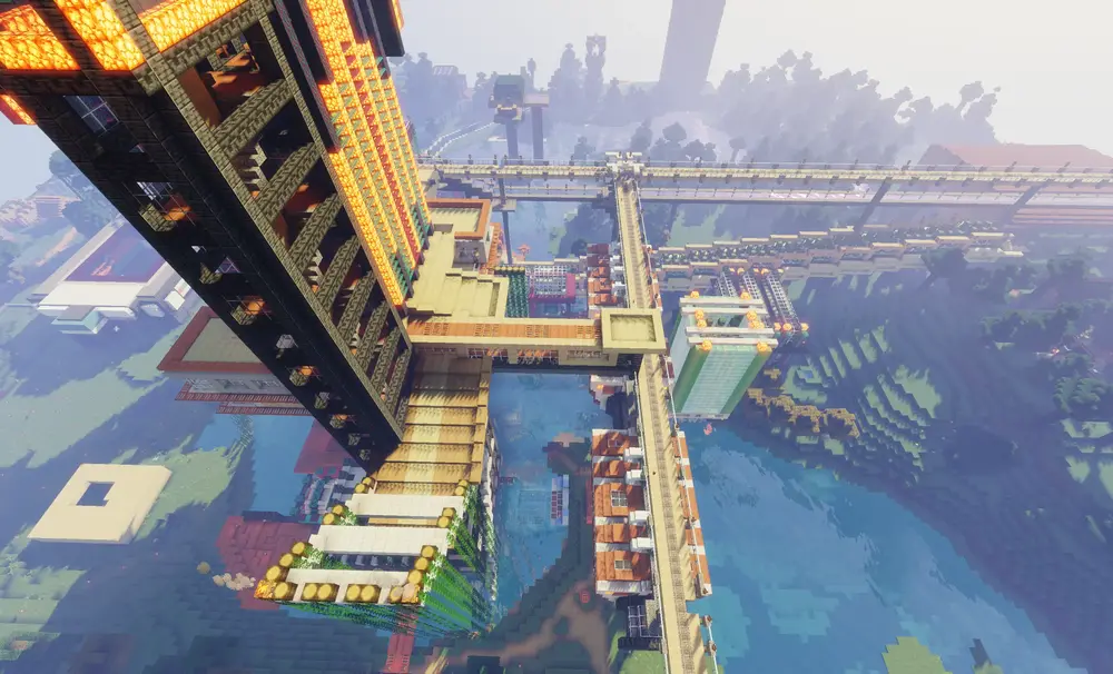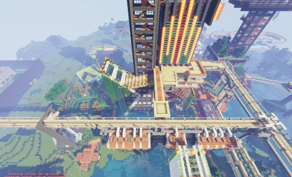 Here are a few shots of the Chunk Tower on our server. Lots of other things have been built up and attached to the tower, but the original 16×16 tower is still there.